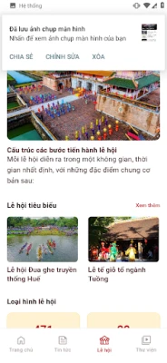 Khám phá thế giới phong phú của các lễ hội truyền thống thông qua một nền tảng số đa phương tiện, tương tác và đầy cuốn hút. Được thiết kế để là cầu nối vững chắc, nền tảng này kiến tạo một kho dữ liệu sống động, nơi các cấp quản lý, nhà nghiên cứu, những người đam mê văn hóa và các đối tác truyền thông có thể dễ dàng tiếp cận, trao đổi và chia sẻ thông tin chuyên sâu về di sản lễ hội. Từ những câu chuyện lịch sử đến những nét độc đáo trong nghi lễ, mọi khía cạnh của lễ hội đều được số hóa, mang đến trải nghiệm khám phá sâu sắc và toàn diện cho bất kỳ ai muốn tìm hiểu về vẻ đẹp văn hóa của vùng đất cố đô.