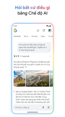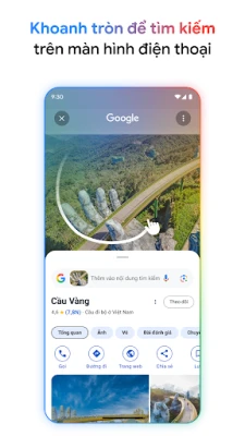 Khám phá thế giới thông tin rộng lớn một cách thông minh và tiện lợi với ứng dụng Google. Đây là cổng thông tin toàn diện, cho phép bạn tìm kiếm và khám phá mọi điều bạn thấy. Với tính năng Khoanh tròn để tìm kiếm đột phá, bạn chỉ cần vẽ một vòng tròn, gạch chân, viết nhanh hoặc nhấn vào bất kỳ hình ảnh, video hay văn bản nào trên màn hình để tức thì tìm được thông tin liên quan mà không cần rời khỏi ứng dụng hiện tại. Dù bạn đang tìm kiếm nhà hàng lân cận, lịch thi đấu thể thao trực tiếp, suất chiếu phim, hay những tin tức nóng hổi, Google luôn sẵn sàng cung cấp câu trả lời. Tính năng độc đáo này hiện có mặt trên một số mẫu điện thoại Android cao cấp và ở một số khu vực, ngôn ngữ nhất định.