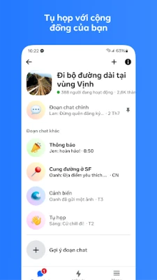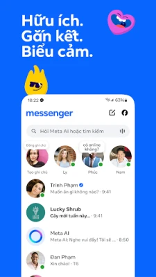 Messenger giúp bạn kết nối miễn phí với bạn bè, gia đình và khám phá cộng đồng cùng sở thích ở mọi nơi. Thể hiện cá tính độc đáo của bạn theo nhiều cách, không chỉ qua lời nói, tất cả trong một ứng dụng tiện lợi.